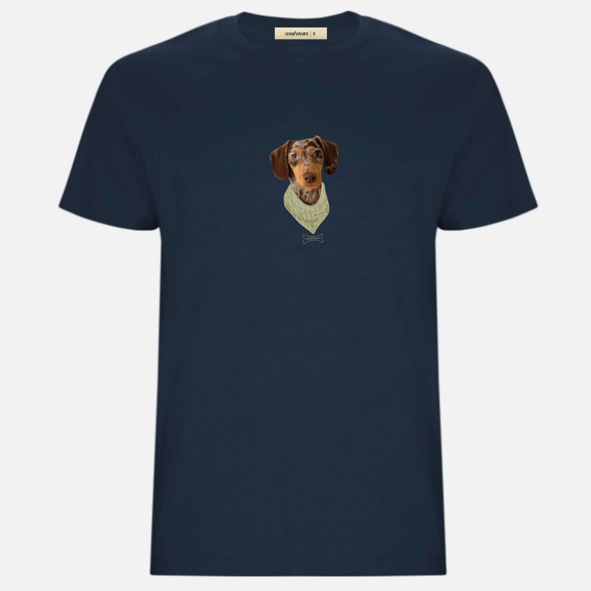 Our customized t-shirt is designed for true animal lovers. You send the photo, and we'll turn it into an exclusive design featuring your furry friend wearing a cute, illustrated banner . The result: an original, fun, and totally unique garment.