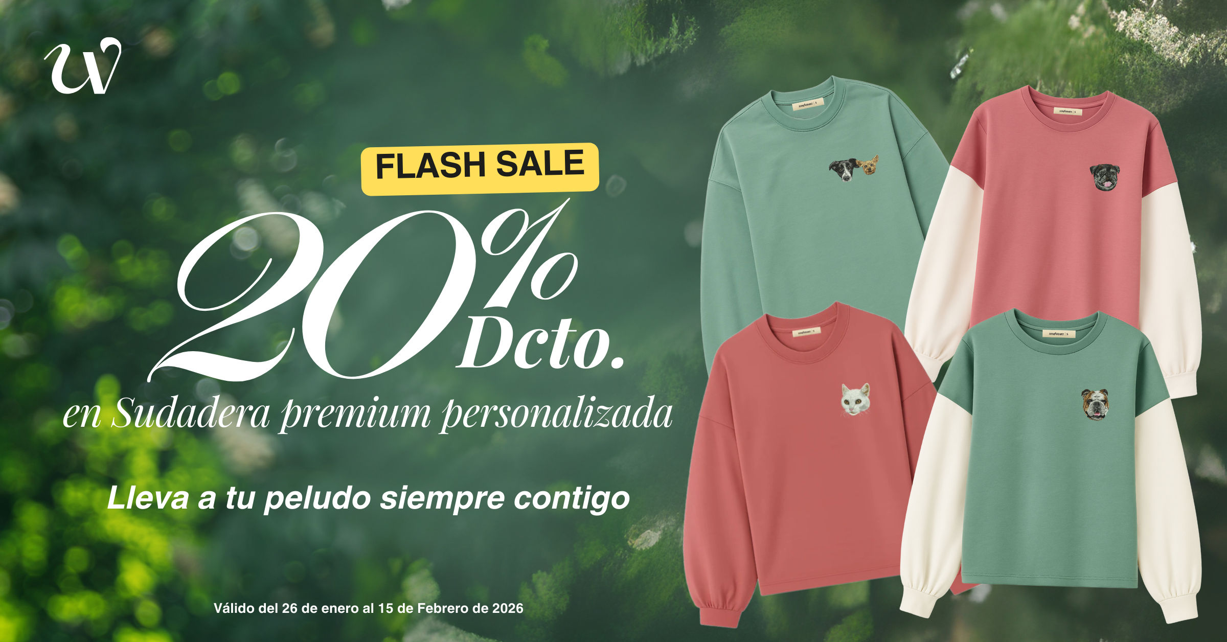 Por tiempo limitado, disfruta de un 20% de descuento en las sudaderas premium bordadas con la cara de tu mascota. Es el momento perfecto para hacerte con tu prenda favorita a un precio único.